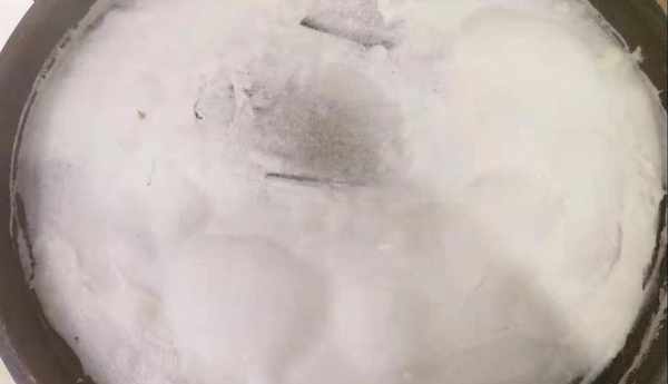 第一步,將一小碗面粉倒入盆中,加入三分之一湯匙咸鹽,然後往盆中加入清水,將面粉與水混合攪拌成面糊,呈無顆粒狀態,面糊用筷子沾一下,不會迅速滴落的狀態就可以瞭,然後加入半湯匙食用油,繼續攪拌均勻。