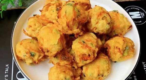 主要食材:土豆,胡蘿卜,玉米,香蔥,蝦肉,燕麥,面粉,雞蛋,鹽,五香粉