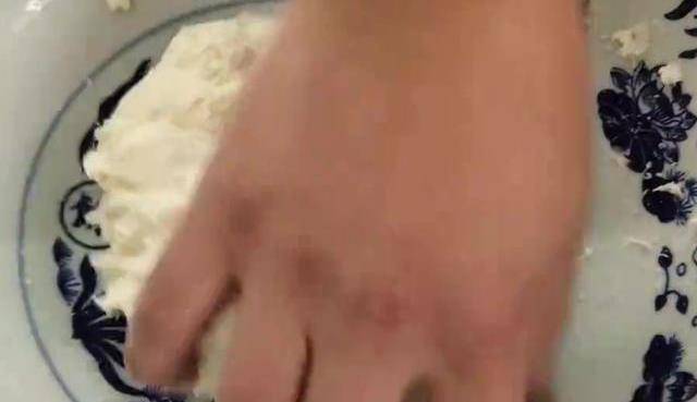 今天我們用面粉做到好吃的,盆中倒入300克面粉加少許食用鹽,增加面的筋性,加5克泡打粉攪拌均勻,倒入180毫升溫水和面,邊倒邊攪拌,攪拌成這樣的大面絮,倒入20克玉米油,然後下手揉面,面團有一些粘手簡單的揉成面團,蓋上鍋蓋醒10分鐘再揉面。