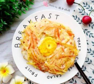 這個早餐叫做胡蘿卜土豆雞蛋餅,因為它是由這三種食材制作而成的,所以我就直接用這些菜來命名;胡蘿卜裡面含有豐富的胡蘿卜素,對人的眼睛有很大的益處;土豆裡面含有很多淀粉和維生素,足以提供人體所需要的能量;雞蛋可以給人體補充蛋白質;所以我就選用這三種食材來制作早餐,既好吃又營養豐盛;大傢一起來看看是怎樣制作的吧!
