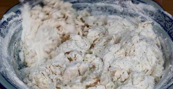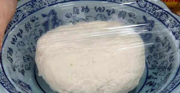 2.現在開始下手揉面瞭,用手掌發力,使勁地按壓和揉搓,直到將它們揉成一個光滑的大面團。把面團放在碗裡,再封上一層保鮮膜,將它放在溫熱的地方蒸發20分鐘。