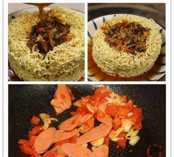 【原料】:方便面,西紅柿,火腿腸,食用油,蔥段,蠔油