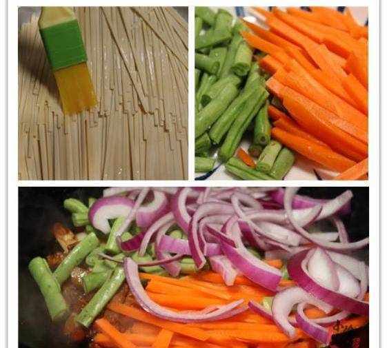 2、趁著蒸面條的時間,我們要準備半個洋蔥切絲備用,再準備一小把豆角切斷備用,一個胡蘿卜切絲備用,一個西紅柿切丁備用,蔥、薑、蒜、八角適量備用。