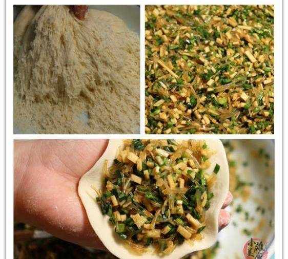【原料】:面粉,粉絲,幹豆腐,韭菜,酵母水,生抽,老抽,蠔油,鹽。