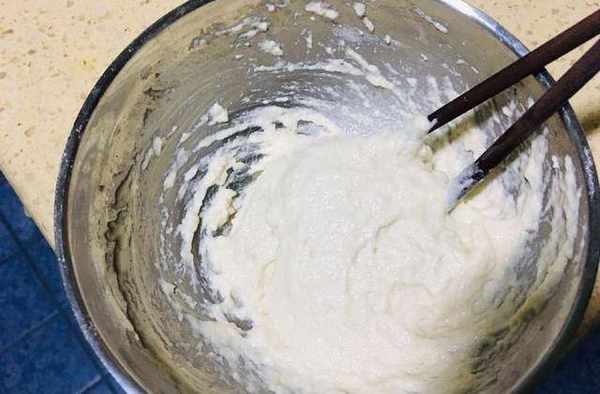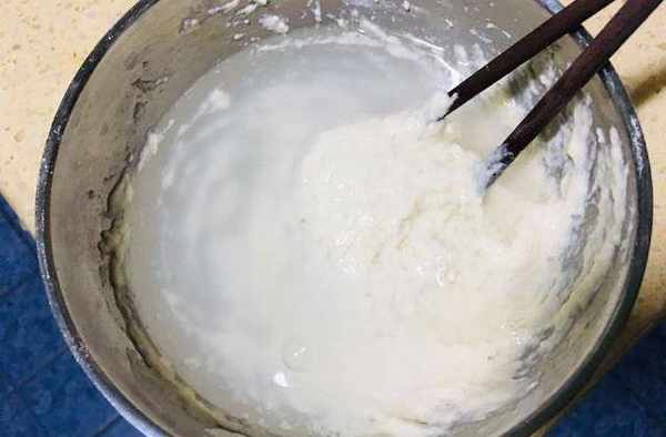 第四步:一小勺面粉,用一點點涼水攪拌成這樣的比較稠的面糊。
