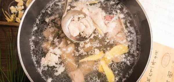 排骨洗凈,冷水下鍋,加薑片和料酒,煮開,撈出瀝幹水分。