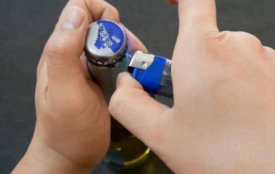 首先我們準備一個火機,然後把火機打開,對著新蓋的邊緣慢慢的進行加熱,最多10秒鐘就可以瞭,不要太長時間,防止酒瓶爆裂,我們再準備一個毛巾或者是紙巾,墊著瓶蓋輕輕一擰瓶蓋就掉瞭。這個過程還是相當安全而且快速的,隻要工具齊全幾十秒鐘就能搞定!大傢下次如果找不到開瓶器的話,不妨用這樣的開瓶方法吧,真的非常科學!