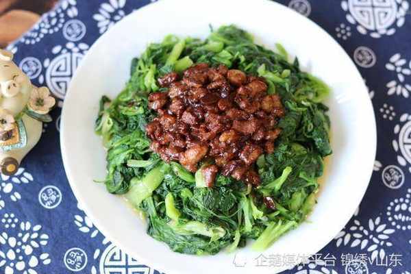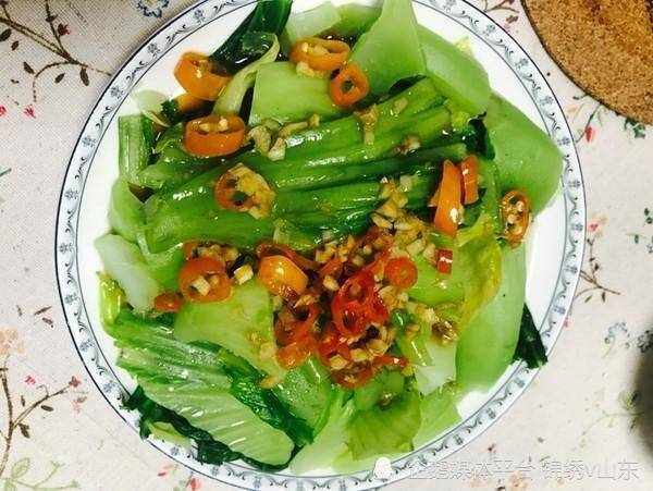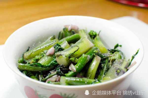 食材:口蘑150克、菜臺300克、鹽、豬油、蒜子