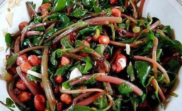 今天要給大傢推薦的菜是涼拌馬齒莧。如果要準備這道菜,首先我們需要準備好食材。首先,我們準備瞭一隻貓馬齒莧、香脆花生米、香油一勺、鹽三克、醋一勺、大蒜五瓣、生抽一勺。