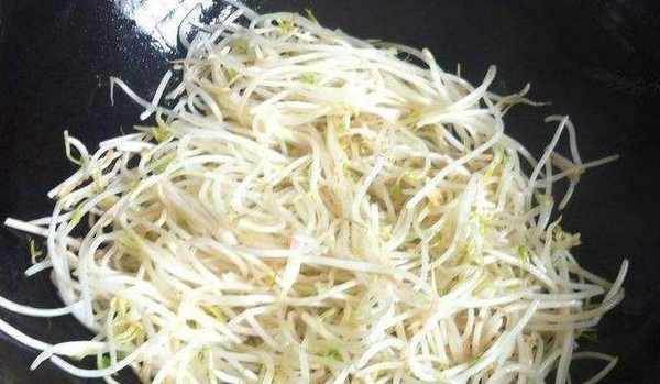 第四步:倒入豆芽,稍微翻炒均勻。待豆芽破爛後,加入適量的醋、鹽、糖翻炒均勻即可裝盤。