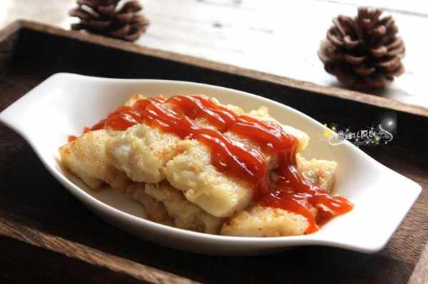 香酥蕃茄龍利魚做法:1,龍利魚切大塊,加鹽和胡椒粉醃漬,裹上一層澱粉。2,鍋裏放入花生油燒熱,放入龍利魚塊炸制金黃色即可撈出控油。3,把龍利魚肉擺到盤裏,上面擠上番茄沙司即成。