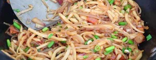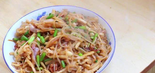 我們準備一些起鍋熱油,我們再往裡面撒上一些花椒跟大料,炸出香味,再放入斷片,加入任務,翻炒均勻,放入蒜苔和楊峰、放瞭、醬油、翻、炒、上色,菜裡面放上一點食用鹽,就能把切好的粉條也放進去,翻炒均勻。當時再放一點點醬油,把餅子放進去,然後把兩個字直接翻炒新聞,剛剛調好的鹵汁打進去,單考今年,這樣的人能夠更加的入味,出鍋前我們撒上一些蒜末,翻炒均勻,就可以出鍋成盤瞭。