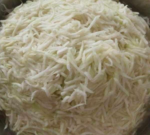 第3步、用擦子擦成絲,用粗一點的擦子。