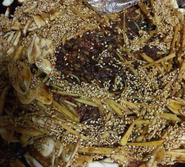 原料:松根、醬油、醋、白糖、味精、白酒、熟芝麻、鹽。
