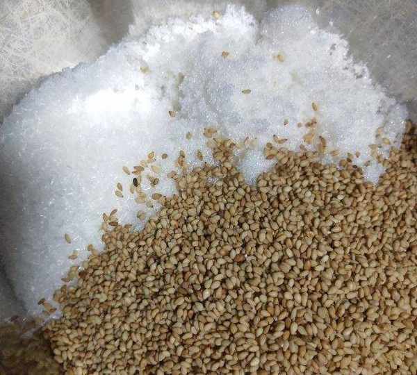 第9步、白糖,味精,熟芝麻,倒入熬好涼涼的醬油醋。