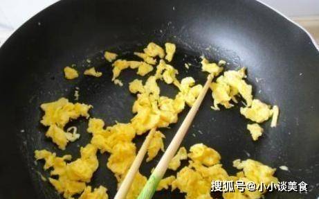 第二步,焯好的莧菜過水涼後,擠出水分,切成小方塊,雞蛋打入碗中,打成蛋液,炒鍋中加入少許食用油,燒熱,倒入拌勻蛋液翻炒;
