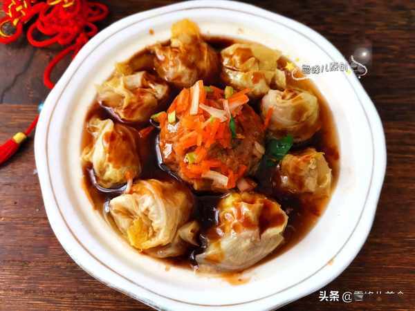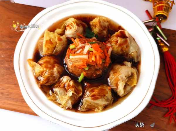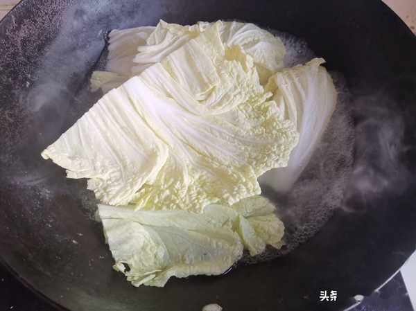 第二步:把白菜葉子放到開水中汆燙撈出放入冷水。汆燙的過程不要時間太久,時間太久了容易煮爛。白菜古時又叫菘,有"菜中之王"的美名,白菜具有較高的營養價值,有"百菜不如白菜"的說法,現在菜市場賣白菜的很多,價位不貴,做這道菜正合適,就像俗語中說的:"肉中就數< span>猪肉美,菜裏唯有白菜鮮。"兩種結合味道超好。
