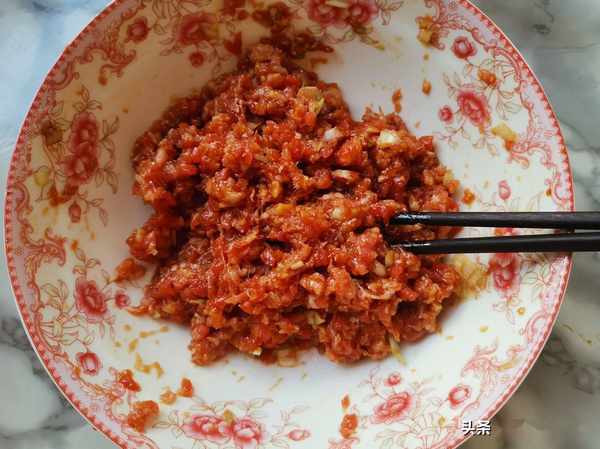 第一步:肉餡放入少許醬油,鹽,葱末,薑末,蛋清攪打均勻。