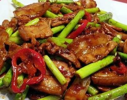 材料:嫩蒜薹、五花肉、郫縣辣豆瓣、蔥、薑、蒜、幹紅辣椒、花椒、八角;