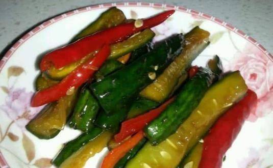 第四步:將醃制好的黃瓜撈出,瀝幹水分,放入步驟3的醬汁中,拌勻繼續醃制5小時,中間要攪拌。
