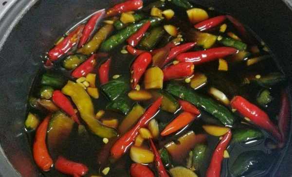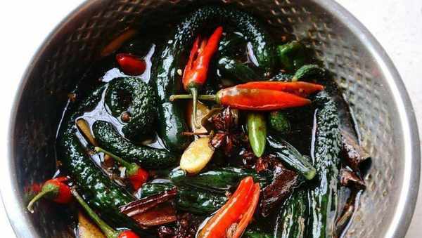 第七步:準備一個幹凈的可以蓋緊的瓶子,把煮好的汁、黃瓜和香料倒入裡面,蓋緊,放兩三天再拿出來吃。