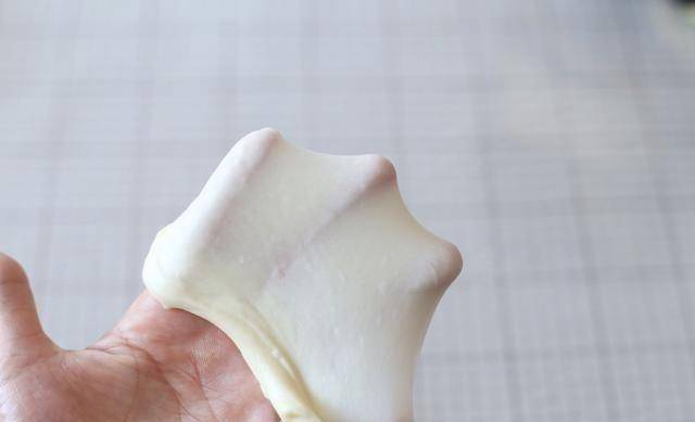 2.繼續揉面團。低檔揉好黃油後,換中檔繼續揉,直到可以拉出半透明的薄膜。在這個級別你可以做面包