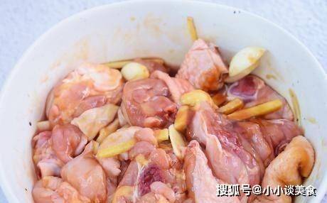 制作過程:第一步準備適量的雞肉,切成塊,用清水沖洗幹凈,檢查水分,放入大碗中,加入少許料酒、鹽、生抽、香油和少許玉米淀粉;