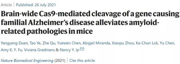 前段時間,香港科技大學研究團隊成功研發出一種新型基因編輯策略,可改善小鼠的阿爾茨海默病的病理症狀,有潜力發展為治療家族性阿爾茨海默病患者的新型療法。