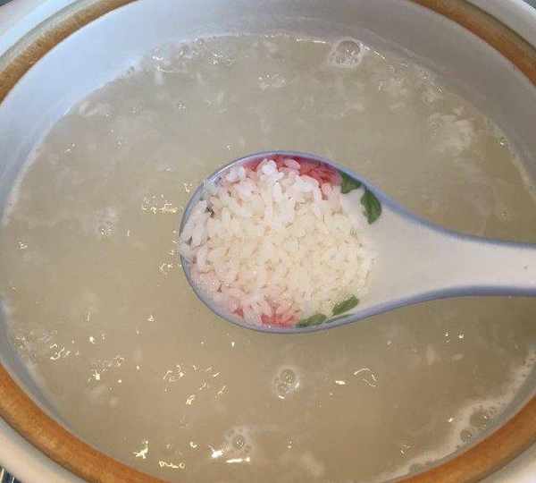 第4步、準備砂鍋加入純凈水燒開,下泡好的大米攪拌一下煮開(期間看火防溢出來)。