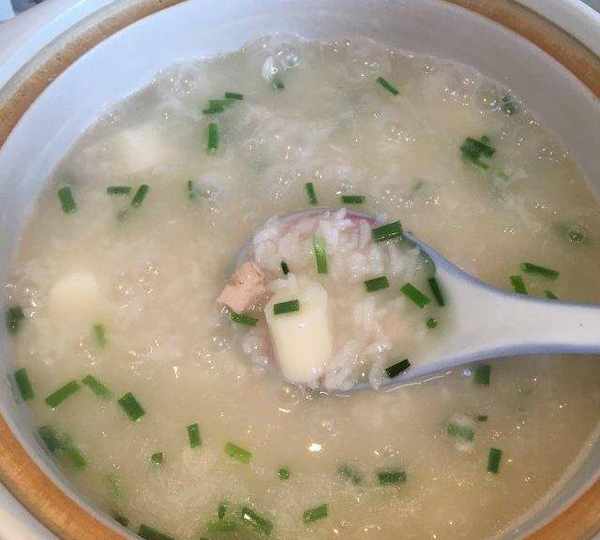 第7步、煮至粥香濃時,加入適量鹽及少許食用油,蔥花調味即可。