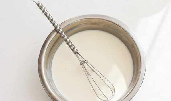 No.2|加入牛奶,攪拌均勻至沒有幹粉,過篩一次;