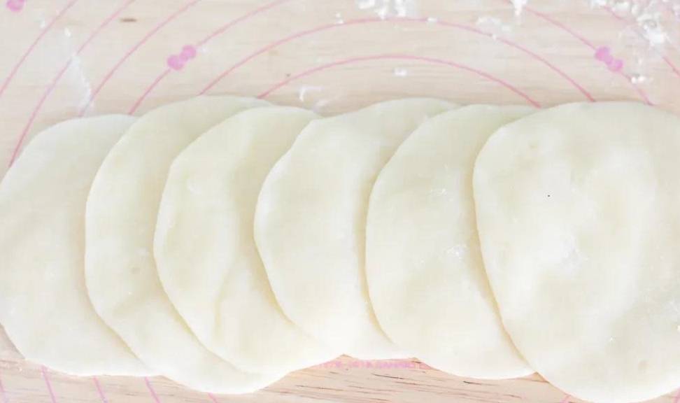 No.9|分別將6個小面團搟成中間厚四周薄的面片,如果沾手的話撒一些熟糯米粉防粘;
