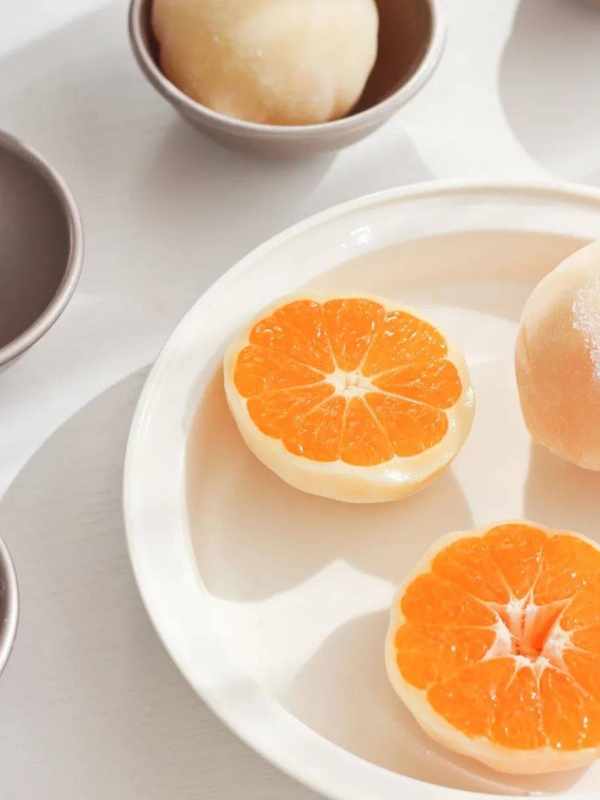 No.10|模具中放入面片,放一個橘子,包起來,將收口處多餘的面團揪掉,撒點熟糯米粉防粘,切開可以看到橘子切面超級好看~