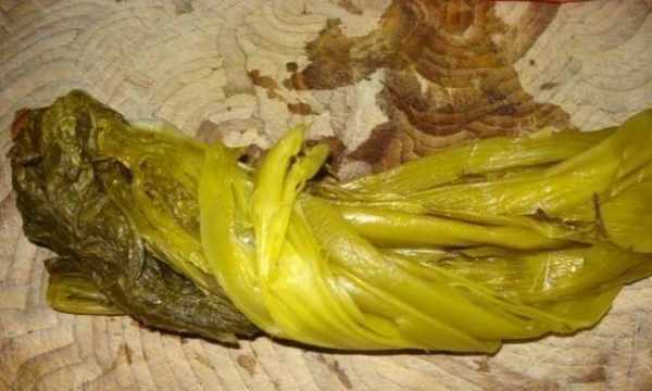 我們去除多餘的水,然後開始用鹽擦拭蔬菜葉子。擦拭後,我們將蔬菜葉子研磨約3小時。醃好後,我們把菜葉均勻的放在一個幹凈的壇子裡,蓋上蓋子,在蓋子邊上加水隔絕空氣,最後及時靜置,一周左右就可以用瞭去吃。
