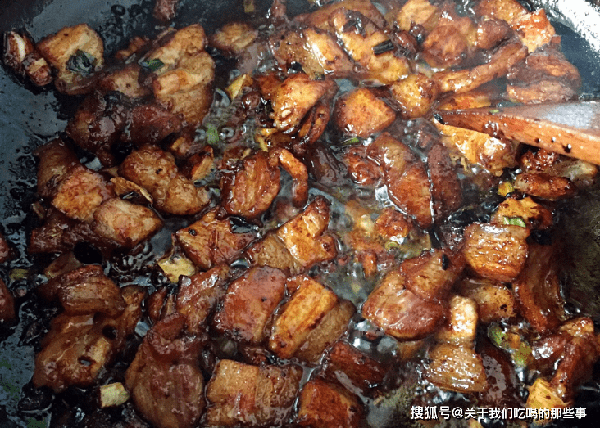 2、另起鍋,加入適量油燒熱,放入五花肉片小火煸炒出油,放入蔥薑蒜爆香,淋入料酒去腥,再加入一勺老抽翻炒上色。