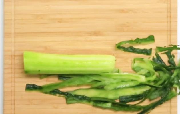 第一步:首先把準備好的黃瓜去皮切小塊;覆盆子清洗幹凈之後放在一邊控幹備用。