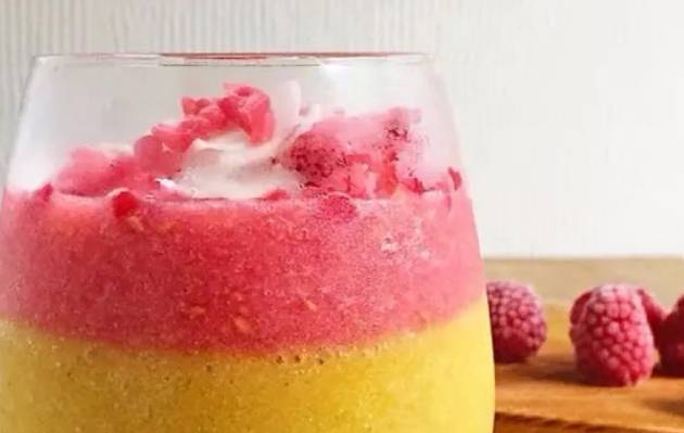 第三步:最後準備一個杯子,把打制好的覆盆子思暮雪倒入其中,配上一根吸管或者小勺,那麼今天分享的這款美味就可以給孩子吃瞭。