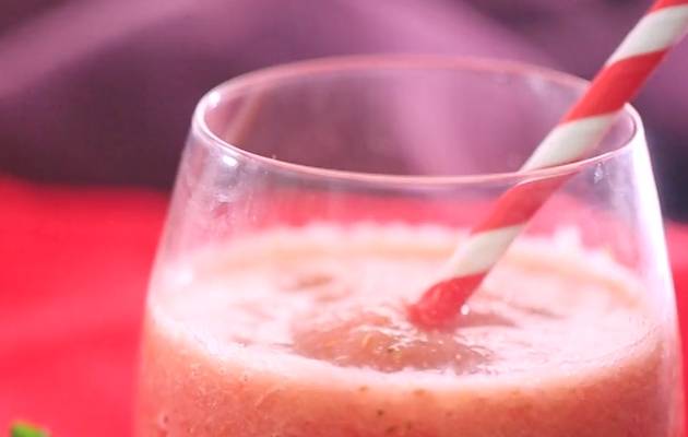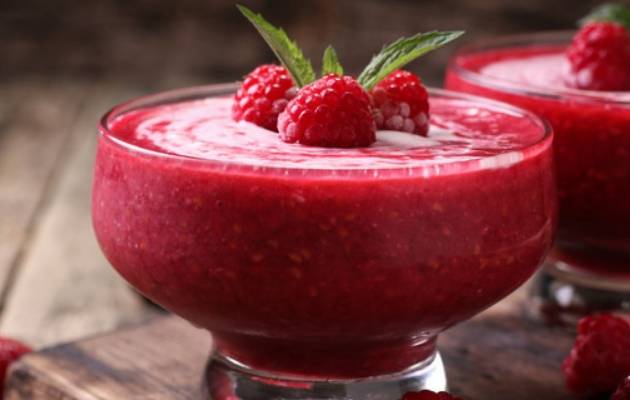 【準備原料】:新鮮的覆盆子一斤,冰塊250g,黃瓜一根,薄荷葉5片,蜂蜜三勺。