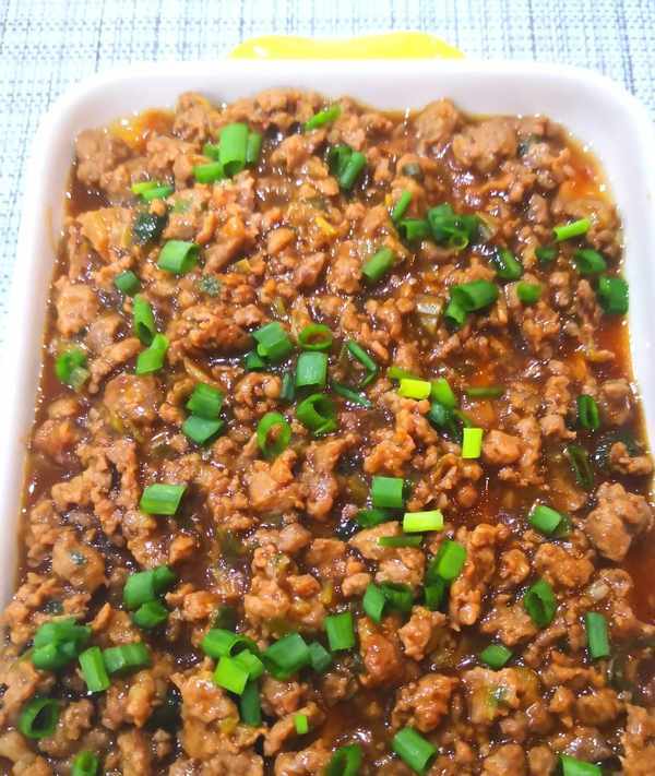 把肉沫鋪在豆腐雞蛋羹上,撒上蔥花即可。