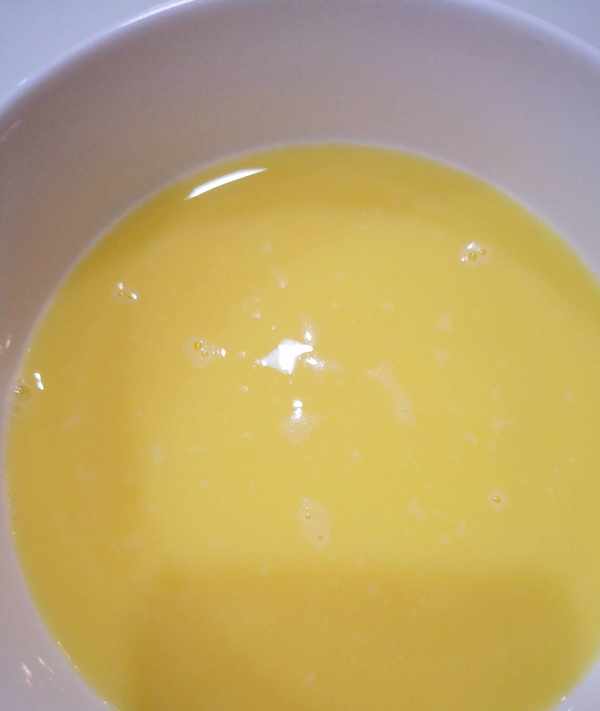 雞蛋裡加少許鹽、適量水,水量是雞蛋液的1.5倍,攪拌均勻後再過篩雞蛋液。