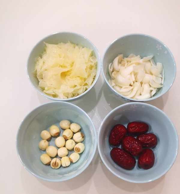 銀耳泡開後清洗幹凈撕碎些,撕得越碎出膠越快;