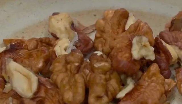 4.準備適量的核桃,核桃的話可以選用自己喜歡核桃。現在有一種核桃,它的皮很薄,稍微一剝就能扯開皮,取出裡面核桃的肉;