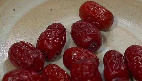 6.準備適量的紅棗,將紅棗洗幹凈。紅棗洗凈之後放在案板上,然後用刀把它切小條,再給它改刀切成細條狀,處理好的紅棗放到一旁備用;
