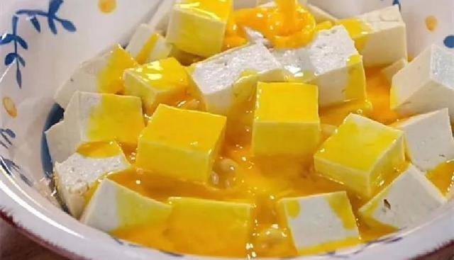 1.將備好的豆腐放在清水中給它洗幹凈,豆腐最好選用老豆腐。洗凈之後用刀切成小塊,再改刀切成小丁狀,切好後的豆腐放在碗裡面備好。西紅柿洗幹凈去皮,去皮後的西紅柿切成西紅柿丁,然後放在一旁。雞蛋洗凈打入碗裡面,用筷子給攪拌均勻,攪拌好後的雞蛋液倒在豆腐上面;