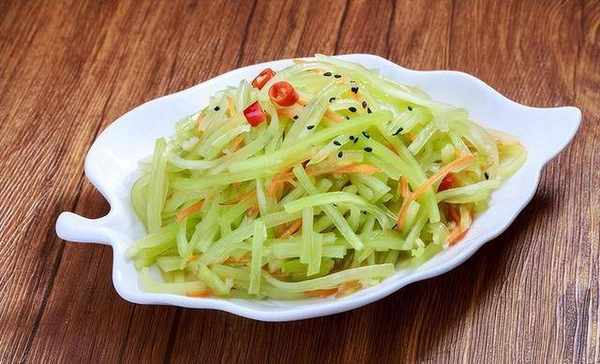 萵筍中含有豐富的植物纖維經常食用能有效的預防便秘,不僅如此,它還含有極易被人體吸收的鐵、維生素等營養物質,能有效的改善貧血的發生,下面再用萵筍做一道涼拌萵筍的美食吧!