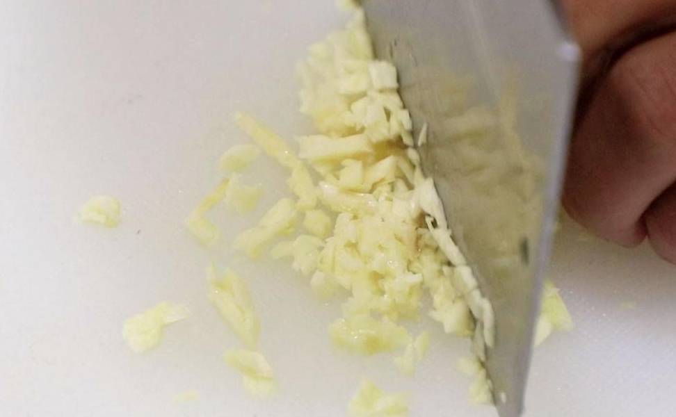 準備大蒜幾粒,拍散後再切成蒜末備用。