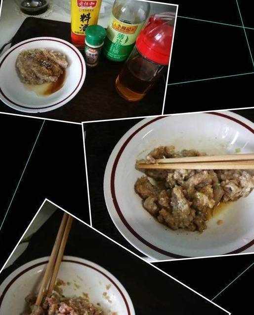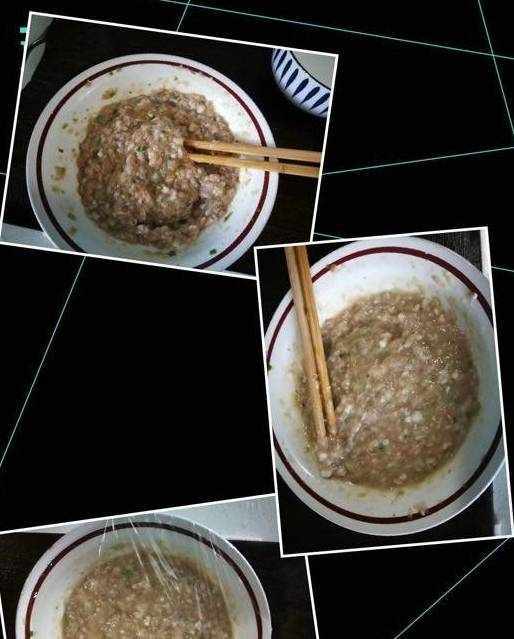 加點料酒、胡椒、少許生抽、鹽、雞精、香油,用筷子順著一個方向攪至吸收,接著加入適量的涼開水,也是按照一個方向攪拌,這樣餡兒就沒有那麼稠瞭,然後再加入適量的涼開水,仍順著一個方向攪拌,攪至水完全被吸收,蓋上保鮮膜先放冰箱冷藏一會兒。