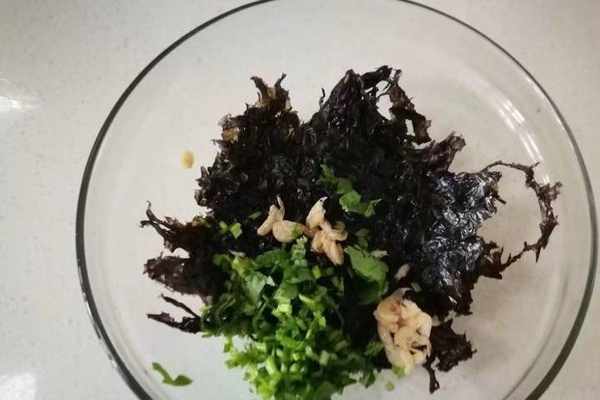 香菜、紫菜適量,一點點雞精,這些直接放入碗中備用就可以瞭。另外還泡瞭幾粒海菜,煮餛飩時候提前放入稍微一煮就行。