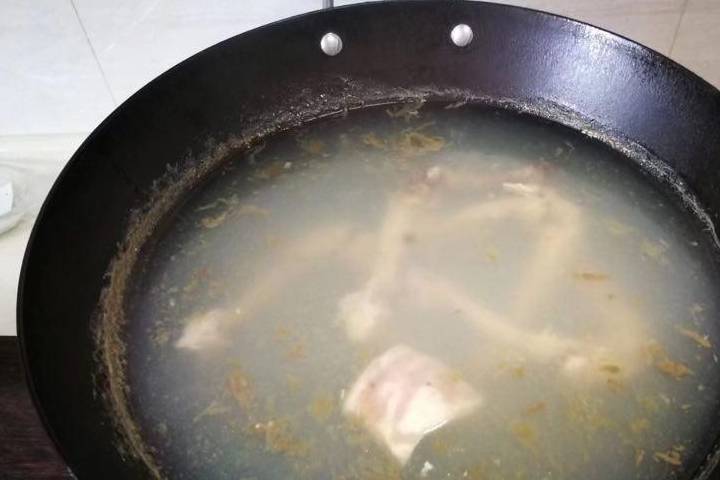 接下來就是備湯料瞭,我今天是煮瞭幾根平時踢下來雞腿骨,也算是小高湯瞭,比清湯會更好喝,煮骨頭湯的時候今天我隻加瞭胡椒,湯顏色看著還不錯。在煮湯的時間可以準備放入湯裡的配料。
