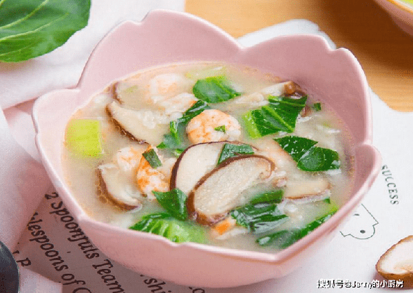 鍋內煮開後倒入疙瘩,邊攪邊倒,再倒入蝦仁,煮到疙瘩、蝦仁熟透,這道早餐就做好瞭。